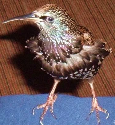 My husband brought home a juvenile (approx. 6 weeks old) starling today. I think that he (the bird, not my husband) got disoriented by a large storm we had yesterday.